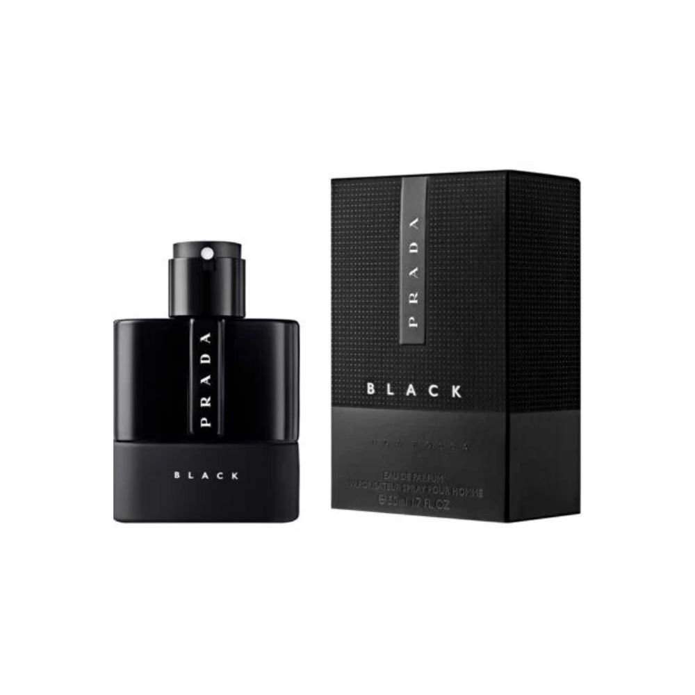 Prada Black, първата парфюмна вода от семейството на Prada Luna Rossa, е създадена от остротата на градските авантюри – от чувството на вълнение, което човек изпитва, когато открива нова страна на своя ежедневен пейзаж. Вдъхновението зад аромата може да бъде описано като момента на размисъл преди сблъскването с ненаситния град; това е чудесното време между работата и забавлението. Това е моментът, когато удовлетворяващата и изпълнена с работа седмица най-накрая е приключила, когато самият град сякаш се съживява. Подобно на оживен център, пълен с възможности и опасности, по-сладките детайли се разпръскват върху дървесен кехлибар и придават хипнотизиращ, почти дезориентиращ ефект. Енергия от бергамот и ангелика – сърцето от пачули и кумарин дава предимство на дървесните основни нотки.