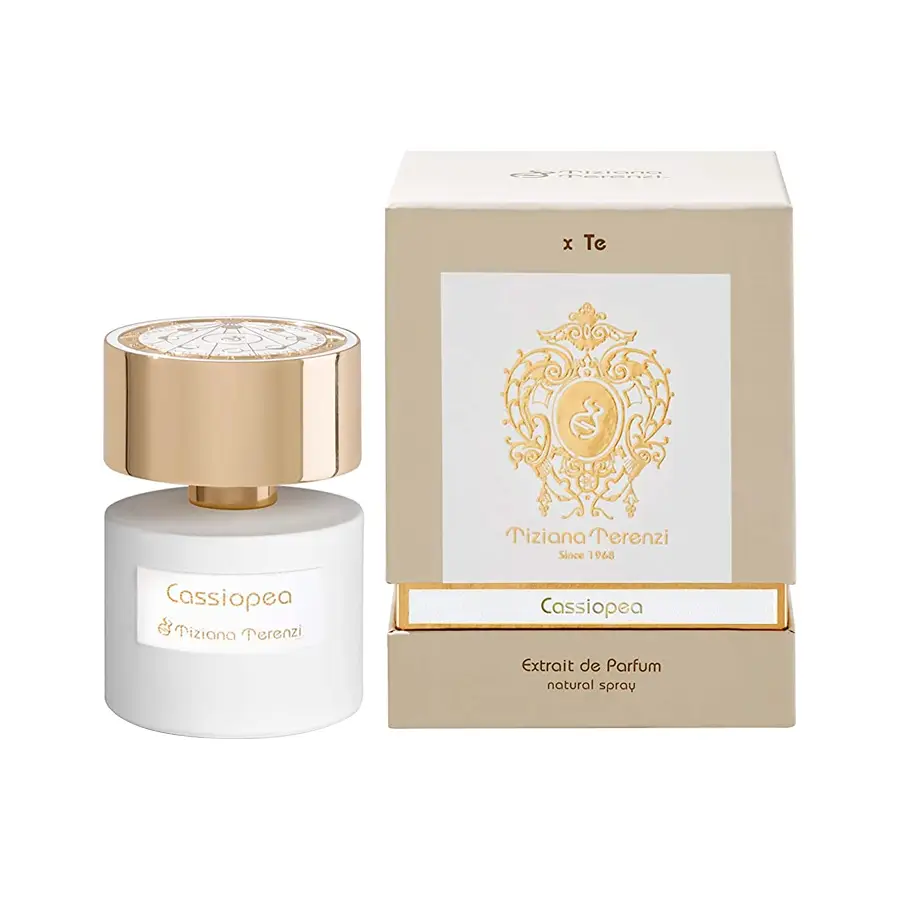 Tiziana Terenzi Cassiopea е луксозен и вълшебен парфюм, който олицетворява космическата елегантност. Част от колекцията на марката, той е вдъхновен от нощното небе и съзвездието Касиопея.